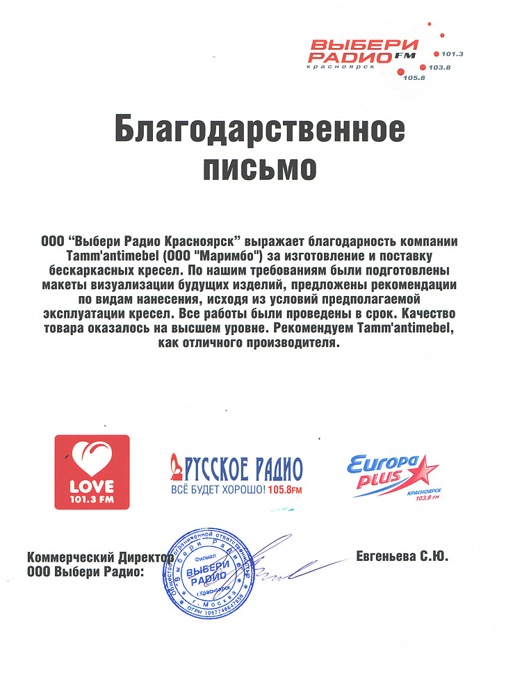 Сертификат соответствия для РФ, Декларация Таможенного Союза и Патент на фирменную систему наполнения бескаркасных кресел фабрики Тамм'антимебель: